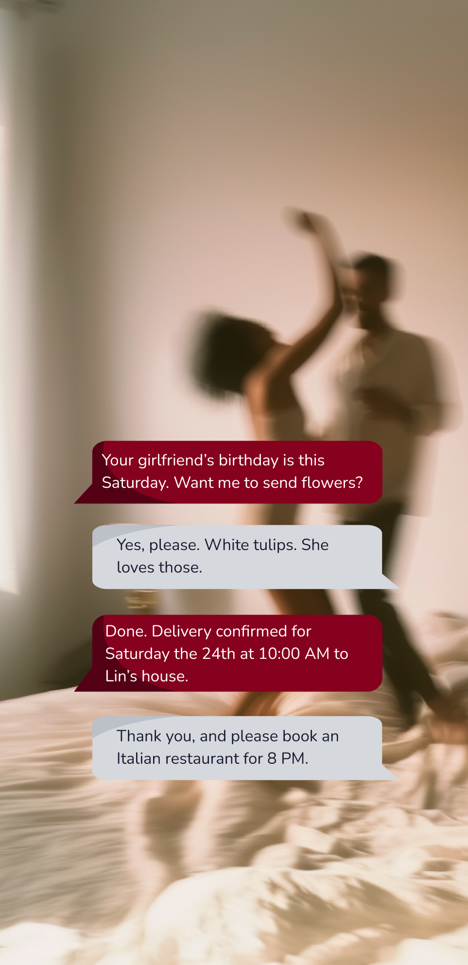 Delegate the details. From booking dinner at that place you love to securing last-minute tickets, one message is all it takes.